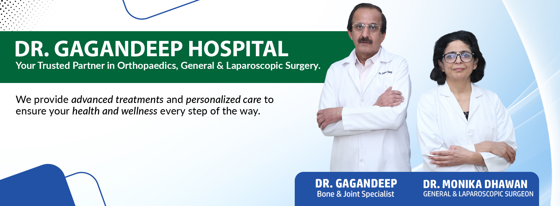 At Dr. Gagandeep Hospital, we are committed to providing exceptional healthcare with a focus on patient well-being. Specializing in Orthopaedics, General & Laparoscopic Surgery, we offer advanced treatments, personalized care, and a compassionate approach to help you achieve optimal health and wellness.